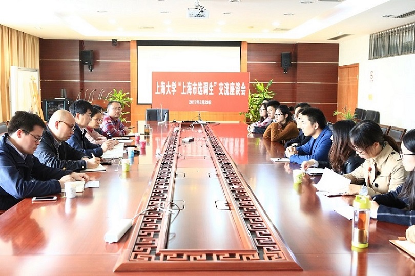 3月29日下午,上海大学“上海市选调生”交流座谈会在宝山校区B 楼417会议室举行。校组织人事部副部长张洁、招毕办副主任傅新华、法学院党委副书记卢欣等及历届选调生代表参加了座谈会。