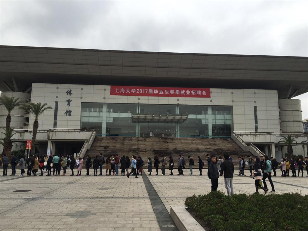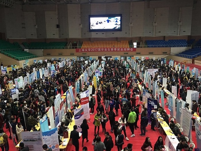 届毕业生春季招聘会在宝山校区体育馆、训练馆顺利举行。招聘会吸引了包括中船重工、中航光电、花旗银行、上海建工、台积电等知名企业在内的380
