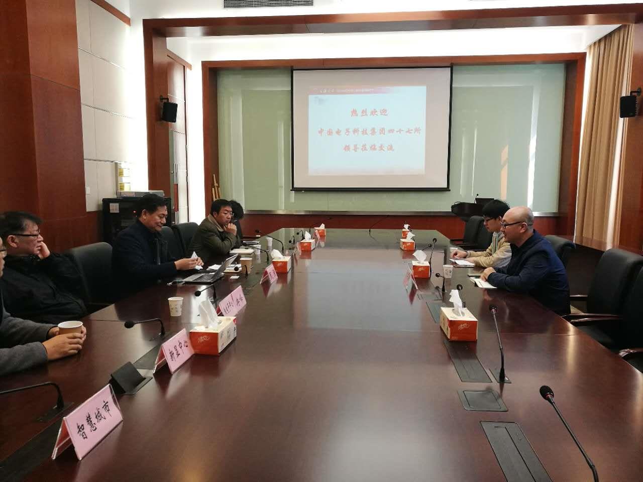 科技发展研究院甄强副院长(主持工作)致欢迎辞,随后中国电子科技集团47所张耀庚主任介绍公司情况及技术需求,接着微电子中心主任冉峰教授介绍了微电子中心情况及科研成果,新显中心杨绪勇介绍了“量子点发光显示”技术,纳米中心王金合介绍了“导热材料”技术,中瑞中心袁光杰介绍了“石墨烯散热”技术,智慧城市研究院介绍了智慧城市研究院基本情况及“视觉识别”等亮点技术。最后,双方进行了热烈的讨论和交流,寻找合作方向,在智慧城市、导热散热材料、显示技术等方面达成初步的合作意向。
