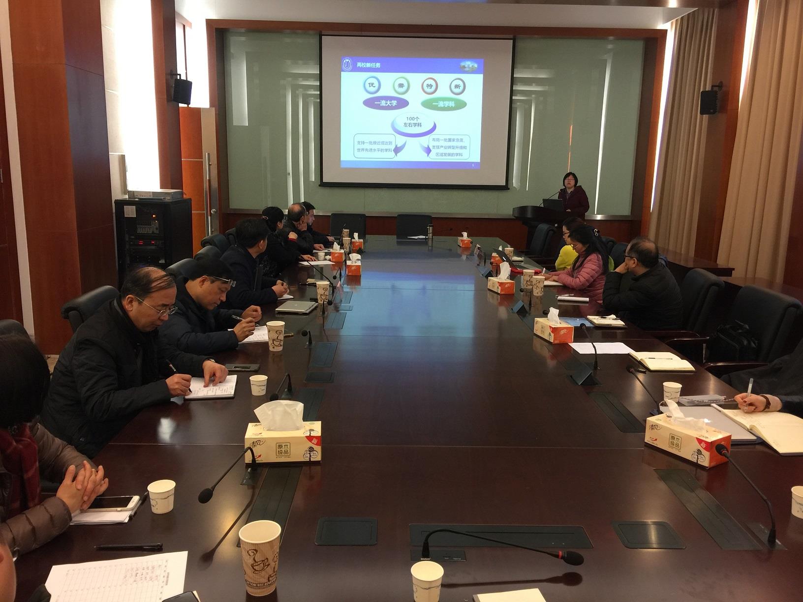 田立君副处长从“国家双一流”、高水平大学建设规划、建设内容和建设进展四个方面详细向我们介绍了上海大学双一流建设的背景、目标、推进情况和战略举措,让与会老师从更高的视角对学校的“十三五规划”、综合改革、人才队伍建设、国际化战略等有了更深刻和清楚的认识,同时也为我们交叉学科的发展、教师的教学科研和人才培养指明了方向。