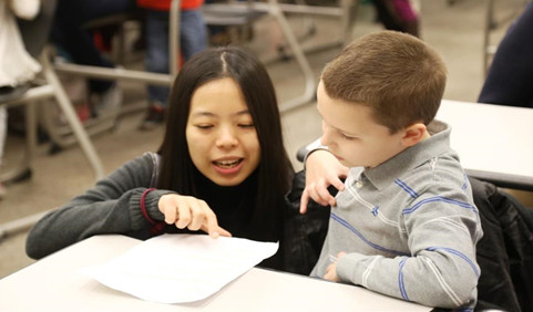 决赛分为即兴演讲和问答题两个部分,参赛选手们的演讲题目丰富多彩,各个都表现出了很高的汉语水平,有的小选手字正腔圆的用汉语介绍自己的名字、家庭和喜好,还有的小选手一口气进行了4首中文歌曲的串烧,高年级的参赛选手用流利的中文谈着中国的文化、美食、习俗等等,来自肯塔基州克拉克郡学区康克莱特小学(Conkwright Elementary School)最小的参赛选手马克.安德森(Mack Anderson)在比赛中表现得落落大方,口齿清晰,还要给大家露一手,当问到他为什么喜欢学习中文的时候,他说:“他想去中国看长城、吃水饺。”演讲时可爱的模样赢得了大家热烈的掌声。来自孔院新教学点彼曲沃德小学(Beechwood Elementary)的公派教师程腊兵有两名学生挺进了决赛,他兴奋的说:“我为他们感到骄傲!作为指导教师,首先,我觉得文化和语言不可分离,在教学生语言的同时,也要注重文化的传授,而文化的传授要润物细无声,比如这次演讲比赛指导过程中,我还着重强调了中国礼仪文化关于鞠躬的标准姿势和道谢的多种方法,这一点在选派的选手实际演讲过程中得到了很好的呈现;其次,通过这次的观摩,我得以了解到各个兄弟学校的教学进度和学生中文的熟练程度,学生在第二个环节看图问答环节的表现也使我认识到教学过程中高中、初中和小学学生在听说读写能力方面存在的差异,这对于我后期的教学设计和调整也很好的指导作用。最后,作为一名中文教师,看到肯大孔院在肯塔基州的中文教学欣欣向荣,遍地开花,硕果累累,内心无比的自豪!来自沃德福德学区(Woodford County)的一位家长说:“这些小家伙们真的太厉害了,没想到在肯塔基有这么多中文说的这么棒的孩子们!”