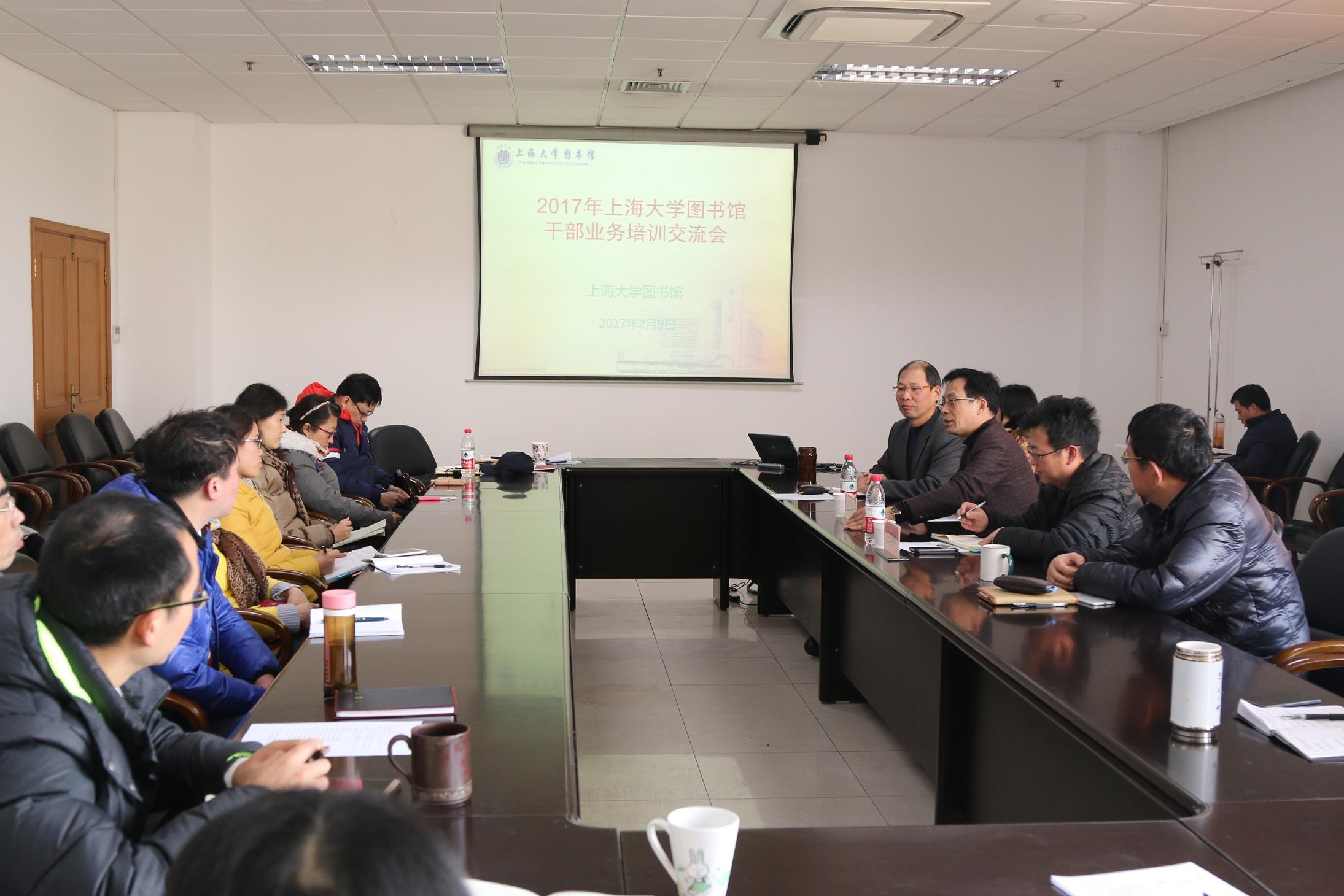 2017年2月9日,图书馆在校本部图书馆三楼会议室举行干部业务培训交流会,旨在通过专题培训,促进全体干部做到形成共识、形成合力,让干部对图书馆未来的发展有个清晰的目标;敢于管理、善于管理,让每个管理岗位都勇于担当,承担起应有的责任,带好队伍;熟悉业务、精通作业,让每个管理者都对全馆的各项业务有所了解,并对自己分管的业务做到熟练掌握。校党委常委、副校长汪敏、校组织人事部副主任、组织部部长王军华、馆领导班子成员及全体新聘干部参加会议,图书馆常务副馆长陆铭主持会议。