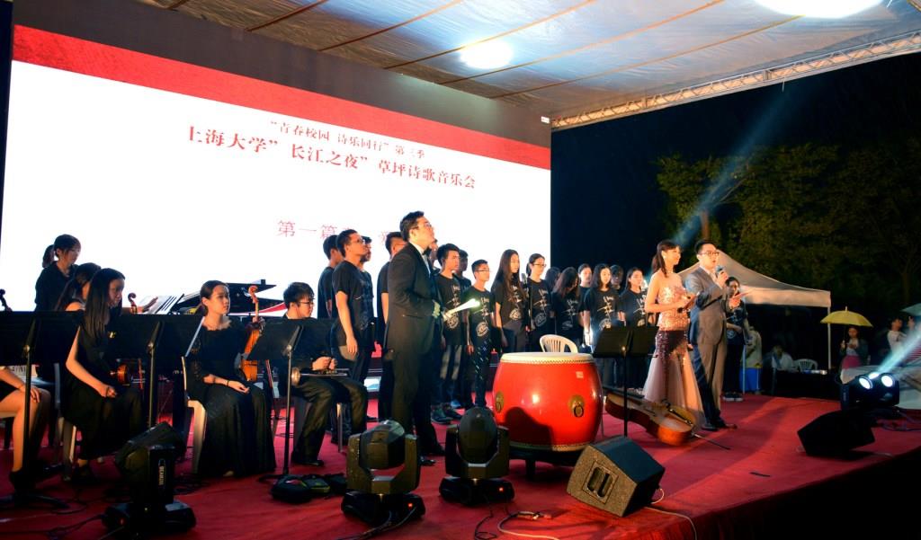 为庆祝中华人民共和国成立66周年,由上海大学党委宣传部、共青团上海大学委员会牵头举办的“青春校园,诗乐同行”第三季——上海大学“长江之夜”草坪诗歌音乐会于28日19时在宝山校区大草坪隆重举行。