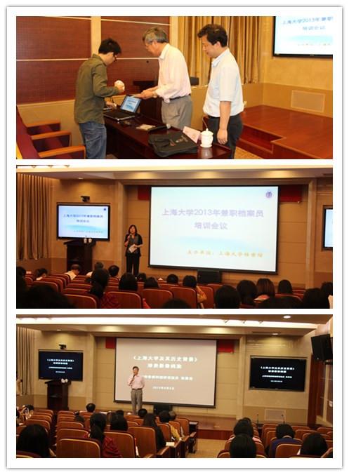 6月5日下午13:30于上海大学乐乎新楼二楼学海厅,全校各部(处)、院(系)的兼职档案员老师齐聚一堂,参加由档案馆主办的2013年兼职档案员培训会议。会议有两项主题:表彰上海大学2012年档案工作先进集体和先进个人;上海音像资料馆张景岳老师作《上海大学及其历史背景》珍贵影像档案(1922-1927)的学术报告。