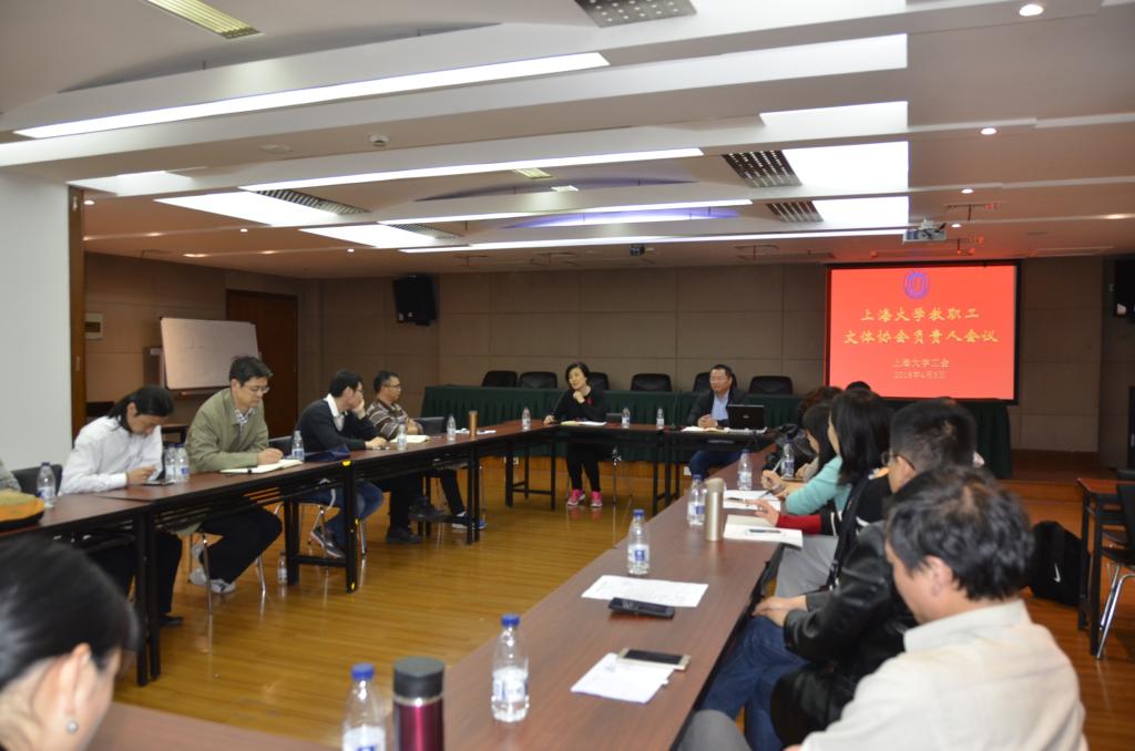 上海大学教职工文体协会工作会议于4月3日在校本部体育馆新闻发布中心召开。我校20个教职工协会的负责人参加了会议。会议由校工会副主席吕晓军主持。