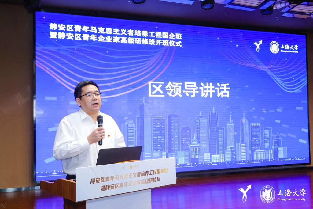 近日,静安区青年马克思主义者培养工程国企班和静安区青年企业家高级研修班在我校延长校区正式启动。中共静安区委常委、副区长梅广清,上海大学党委常委、副校长聂清,共青团静安区委员会书记吴佳妮,静安区国有资产监督管理委员会副书记王为,共青团静安区委员会副书记陆迪等领导以及近百位静安区青年企业家、国企青年骨干学员共同出席开班仪式。开班仪式由上海大学上海经济管理中心主持工作副主任孟添主持。
