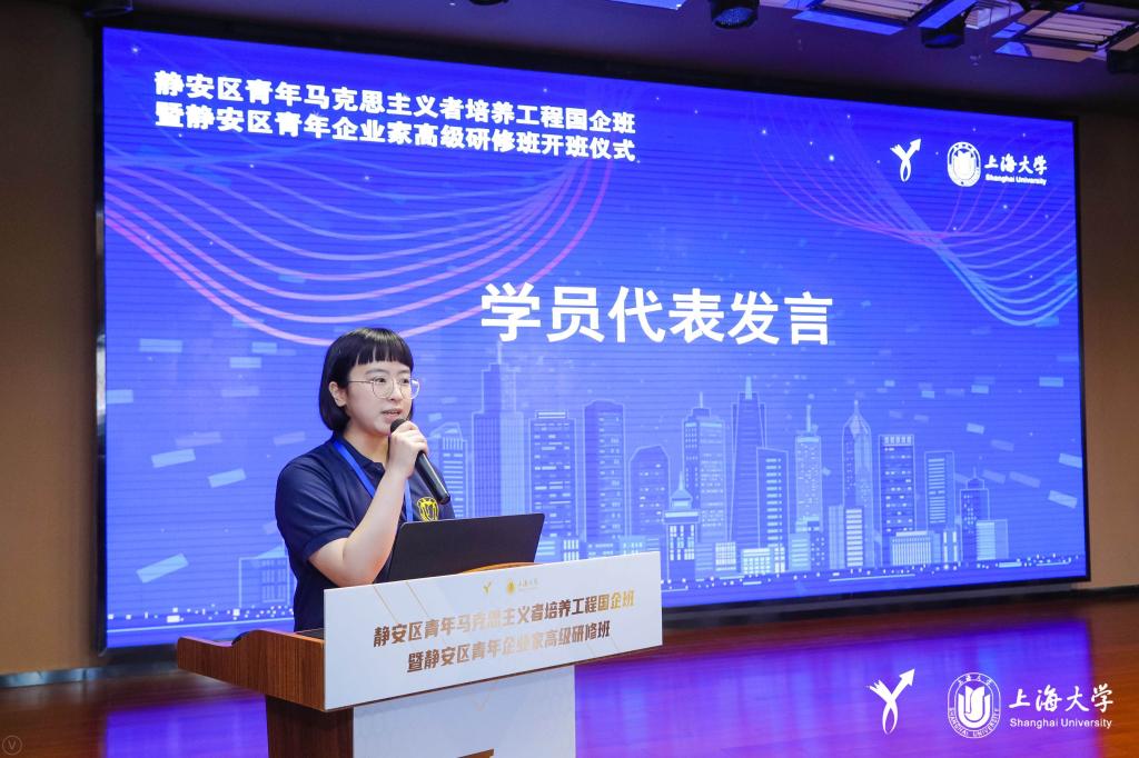上海大宁资产经营(集团)有限公司团委书记李禹璇作为静安区青年马克思主义者培养工程国企班学员代表发言,表达了参训全体学员将以青马培训班为新起点,争做新时代的奋进者、搏击者,在实现中华民族伟大复兴中国梦的伟大征程中放飞青春梦想,书写人生华章的决心。