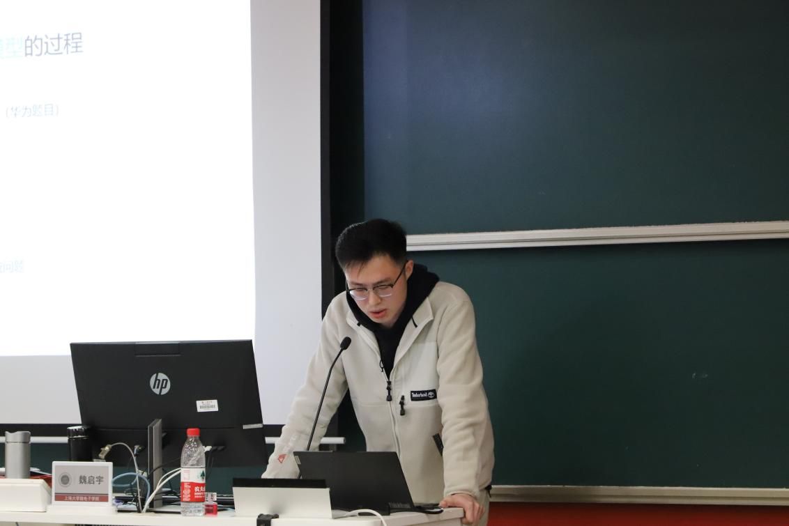 随后,微电子学院2021级硕士研究生魏启宇同学介绍了中国研究生数学建模竞赛。强调参加数学建模竞赛可以让数学基础得到锤炼,另外写作能力、抗压能力、合作能力、信息收集能力、快速学习能力也能得到很大的提升。要注重学习+模仿+全流程训练,通过全流程训练来磨合团队和查漏补缺。最后介绍了队友分工具体的内容,培养好的数学思维和基础,并提供了数学建模资料的获取方式。