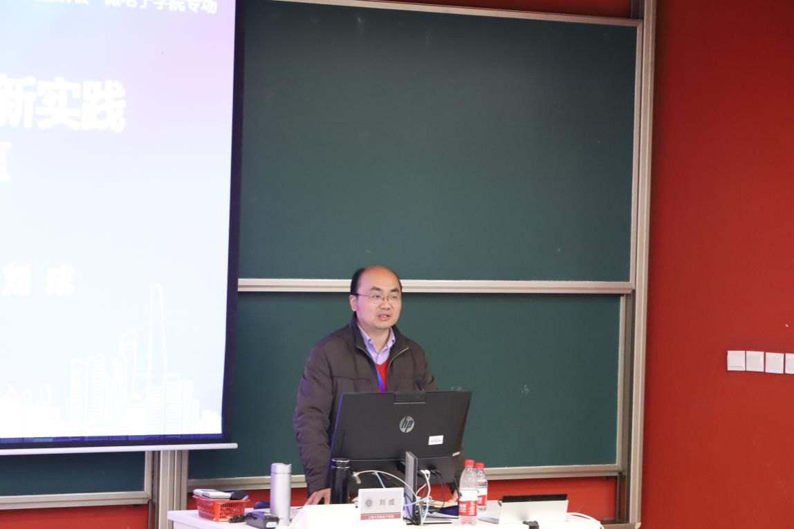 微电子学院副教授刘成老师从指导老师角度给同学们进行了创新创业大赛的经验分享。刘成老师谈到,竞赛是科研或者实习的一部分,参加竞赛可以提高大家的科研水平,丰富科研内容,要选择好指导老师,摸清小组成员的性格特点和专业优势,实现互补。