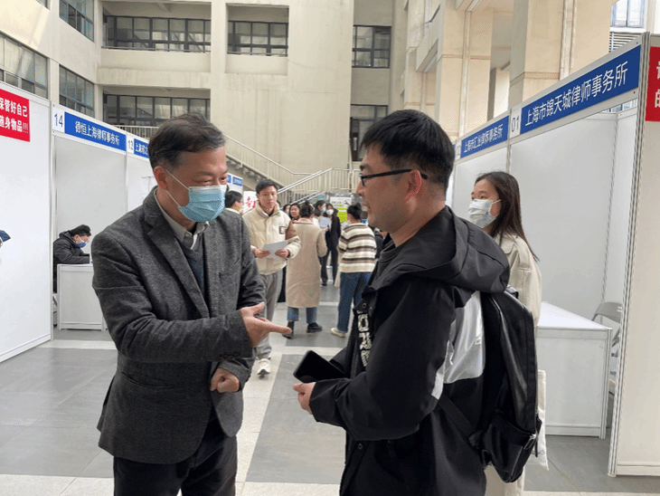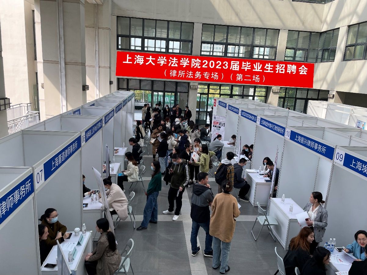 为了进一步促进用人单位与法学院毕业生的双向沟通和选择,提高学生就业的专业对口度,搭建有效的双向选择平台,在上海大学招生与毕业生就业工作办公室大力帮助和指导下,3月27日下午,上海大学法学院2023届毕业生招聘会(律所法务专场)(第二场)在宝山校区东区经管楼二楼平台举行。
