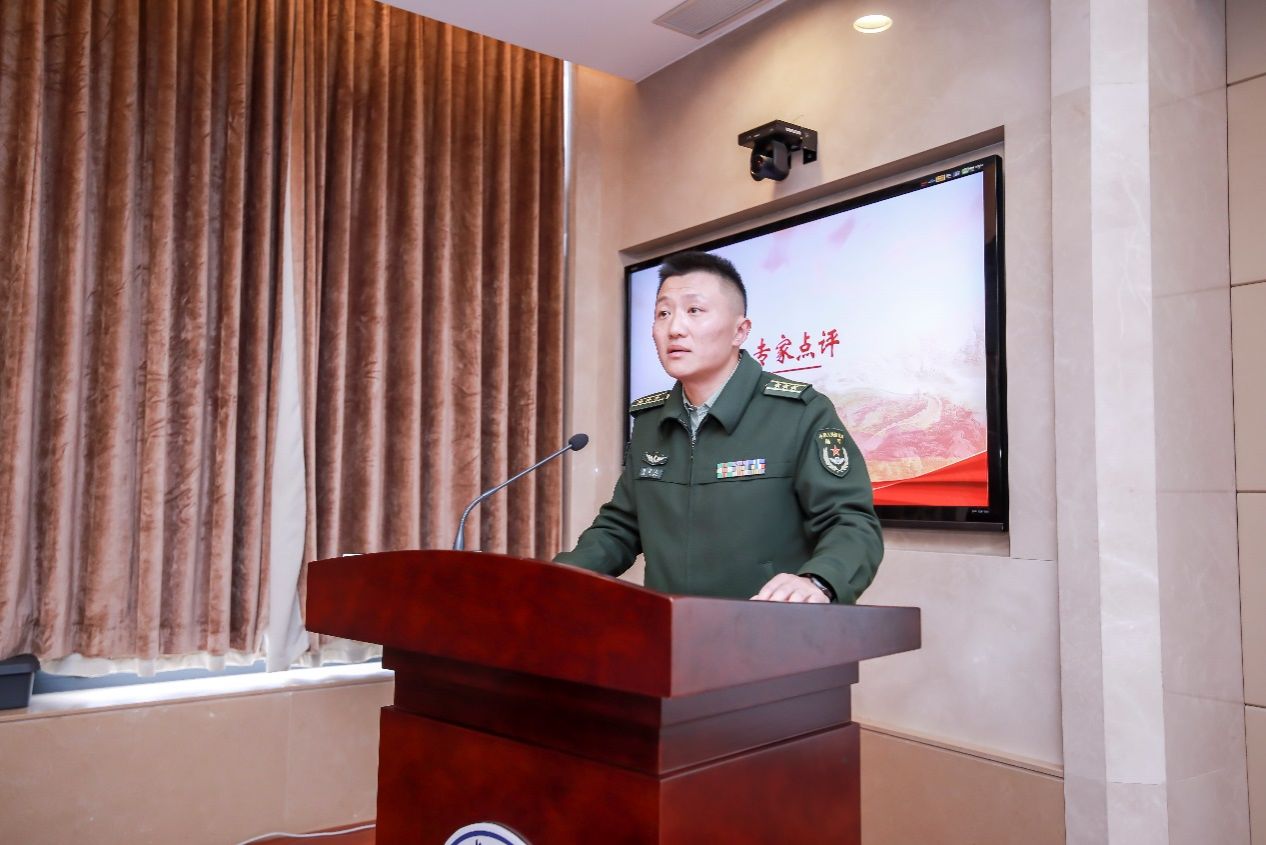 答辩结束后,鲍俊成上校进行点评,他提出上海大学和好八连一河相隔,红色血脉源远流长,上大学子特别是上大退役学生要始终传承红色基因,践行强国强军使命,做红色传人。鼓励同学们用自己的热血青春报效祖国,为实现祖国统一和民族复兴做出应有的贡献!