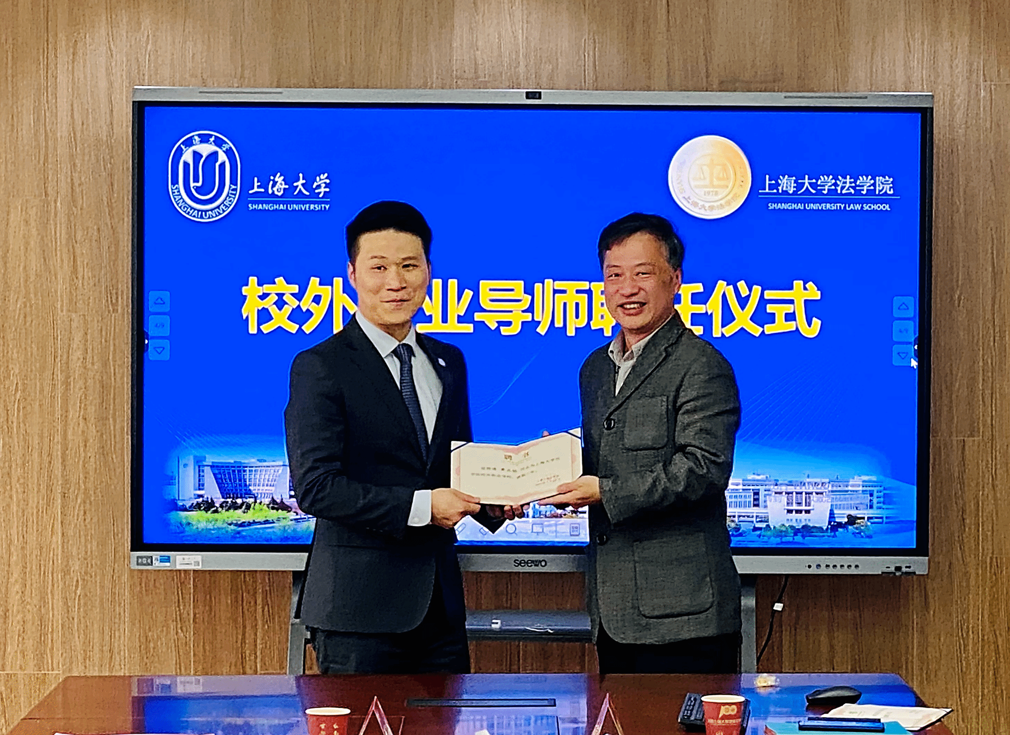 4月3日下午,“尚法·正泓诚基金”捐赠暨校外职业导师聘任仪式在上海大学宝山校区东区法学院304会议室顺利举行。出席仪式的有北京盈科(上海)律师事务所股权高级合伙人、管委会委员、民事法律事务部主任沈诚律师,北京盈科(上海)律师事务所股权高级合伙人、管委会委员、民事法律事务部副主任黄正桥律师,北京盈科(上海)律师事务所股权高级合伙人、管委会委员、民事法律事务部副主任金泓毅律师,北京盈科(上海)律师事务所陈佳奇律师、贾宇婉律师、刘小迪律师助理,上海大学对外联络处副处长、校友会办公室副主任杨静,法学院党委书记徐国明,党委副书记、副院长于伟,办公室主任江晓双,团委书记林建玲,团委副书记杨晓彤。与校外职业导师结对的9名2021级研究生参加了仪式。仪式由法学院党委副书记、副院长于伟主持。