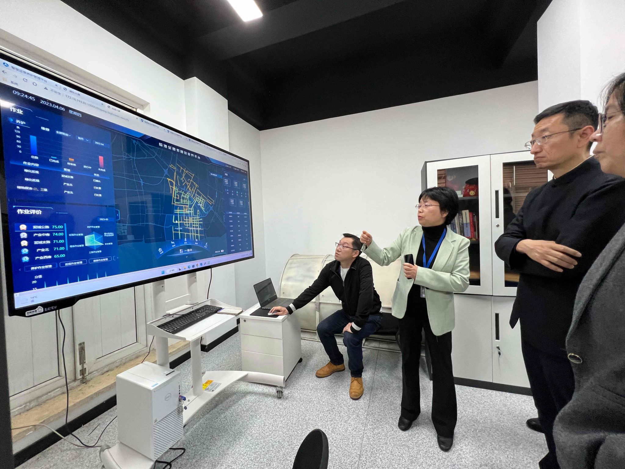 苟燕楠教授等一行首先参观了胡珉教授领衔建设的城市社区数字化治理智能仿真与协同决策实验室,检查2022年度“高地大”项目预算执行情况,了解VR/AR头盔和眼动仪等设备在教学和科研上的使用效果,观看了巡检机器人、交通基础设施全要素智慧管理平台和数字盾构远程监控系统的现场展示,对科研成果在上海市城市数字化转型的应用给予了高度评价,并对科研工作如何进一步提炼、深化和发展给予了指导。