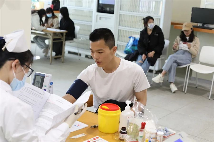 完成报名的同学们按照规定流程有序地进行献血。在完成验证登记后,同学们依次进行体检、验血、献血和休息等环节,整个现场工作贯穿始终,井然有序。