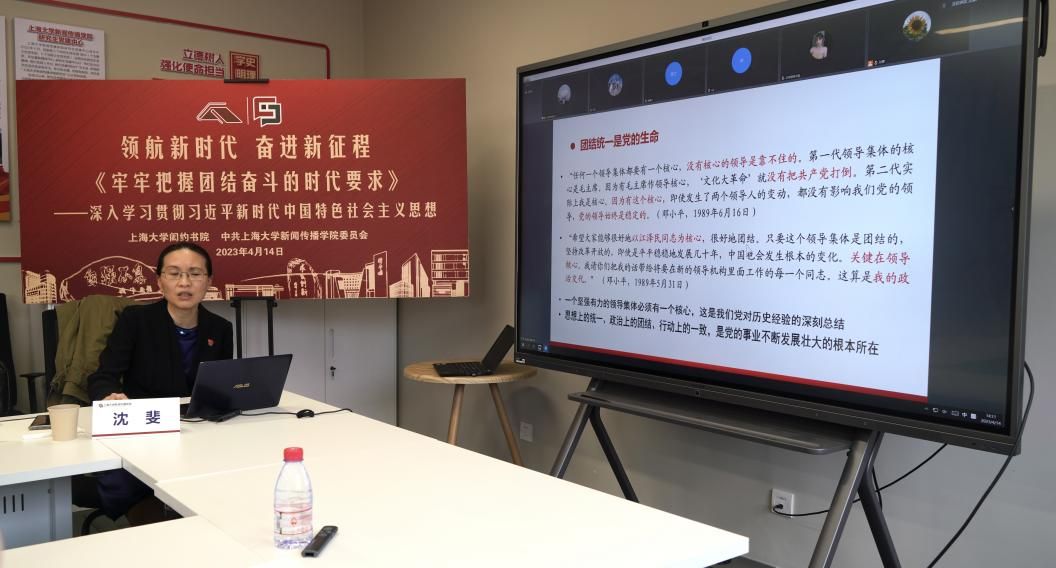 4月14日下午,中国浦东干部学院党性教育研究中心主任、上海大学马克思主义学院博士生导师、中国辩证唯物主义研究会理事、上海市政治经济学专委会副秘书长沈斐教授在新闻传播学院智能媒体传播创新实验中心413会议室开展了主题为《牢牢把握团结奋斗的时代要求》的专题讲座。新闻传播学院党委副书记、副院长王智君主持,学院教师、本科生、研究生代表参加了讲座。