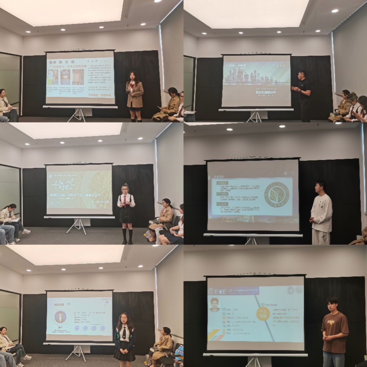 本次大赛包括个人展示环节和答辩环节,每位选手依次上台,通过配合PPT及生涯规划书生动形象地向评委和观众们讲述自我认知、职业生涯条件分析以及职业生涯目标,分析自我的优势劣势、现状和计划的可行性。