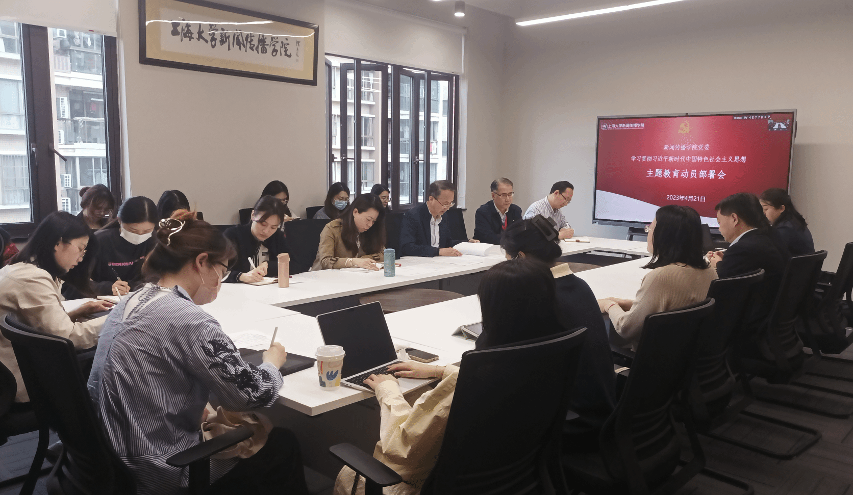 新闻传播学院党委书记王晴川传达了校党委书记成旦红在学校学习贯彻习近平新时代中国特色社会主义思想主题教育动员大会上的讲话精神,并对新闻传播学院开展主题教育进行了全面动员部署。他指出,在全党深入开展学习贯彻习近平新时代中国特色社会主义思想主题教育,是贯彻落实党的二十大精神的重大举措,是深入推进新时代党的建设新的伟大工程的重大部署。王晴川同志就学院开展好学习贯彻习近平新时代中国特色社会主义思想主题教育提出了三点要求:一是深刻认识开展主题教育的重大意义,全面准确把握开展主题教育的重大意义和目标要求;二是强化政治理论学习和马克思主义新闻观教育,结合学院实际扎实推进主题教育;三是精心组织安排,注重舆论引导,探索建立长效机制,确保主题教育取得实效。