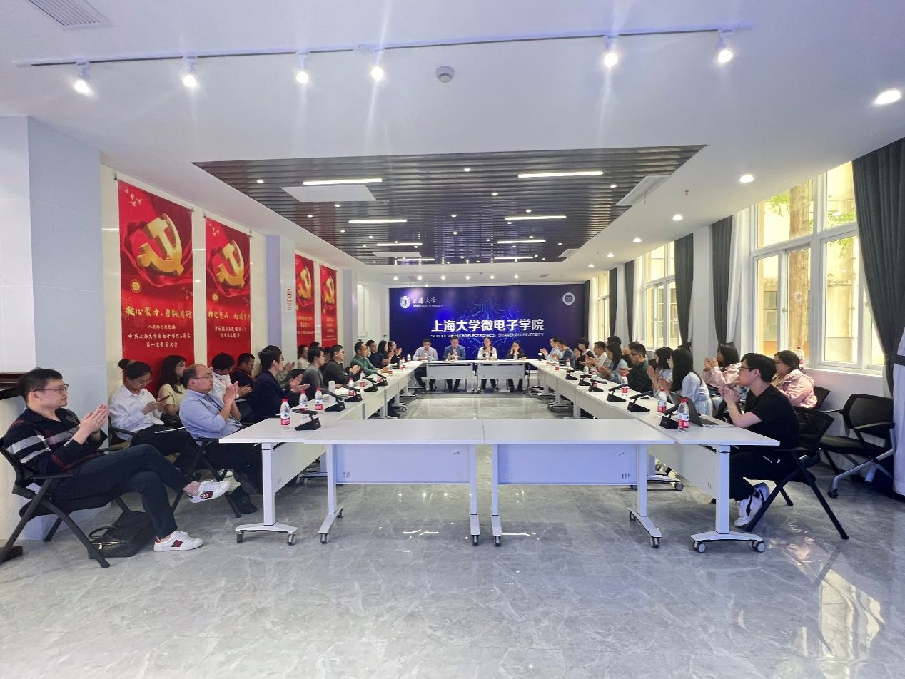 4月18日,上海大学微电子学院干部宣布会在嘉定校区微电子大楼101多功能厅举行,副校长汪小帆,校党委常委、组织人事部常务副部长、组织处处长、党校常务副校长沈艺,微电子学院党政领导班子成员及全体教师等50余人参会。会议由沈艺同志主持。