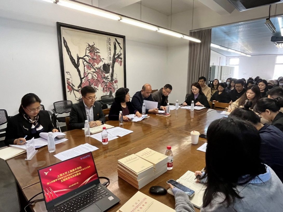 4月21日下午,上海大学上海美术学院召开学习贯彻习近平新时代中国特色社会主义思想主题教育动员部署及调研启动。校党委联络组联络员郁丽洁列席会议。院领导班子成员、院工作专班成员、全体党支部书记、支部委员及党员师生代表共60余人参加了此次会议。