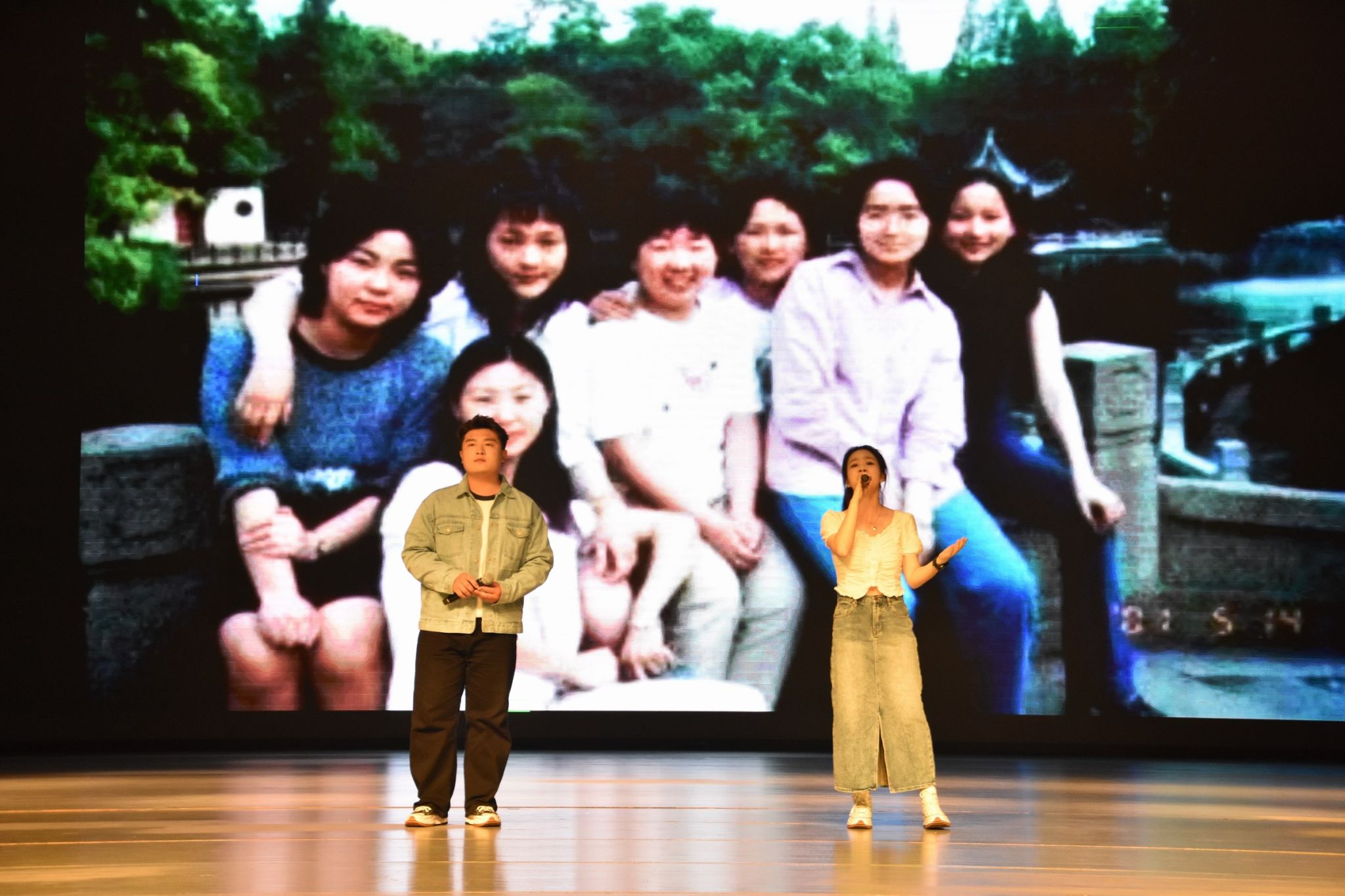 首先是郝一帆、邵冠兰同学为大家带来歌曲《飞云之下》,在悠扬的歌声中,校友们一幕幕精彩瞬间缓缓展现,一张张老相片,瞬间将大家带回了那斗志昂扬的青春岁月。