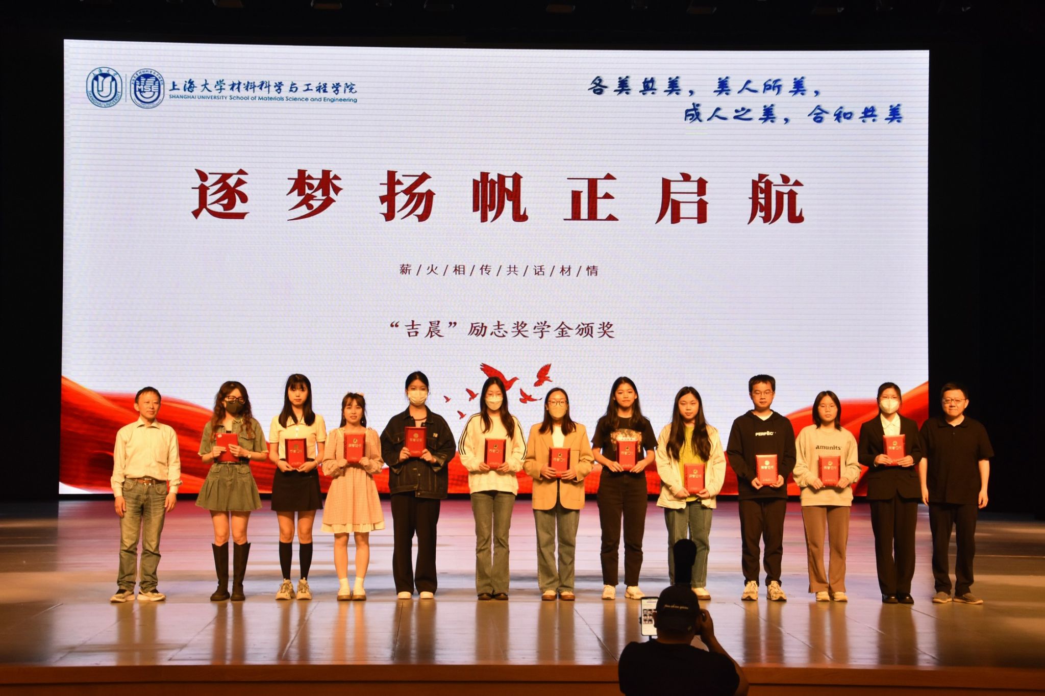 逐梦扬帆正启航,活动现场还颁发了由上海吉晨卫生后勤服务管理有限公司资助的“吉晨”技能奖学金、“吉晨”励志奖学金,麦加芯彩新材料科技(上海)股份有限公司资助的“麦加”奖学金,以及上海日之升科技有限公司资助的“日之升”奖学金,并邀请84级校友、上海吉晨卫生后勤服务管理有限公司董事长黄晨为大家介绍设立奖学金的初衷。