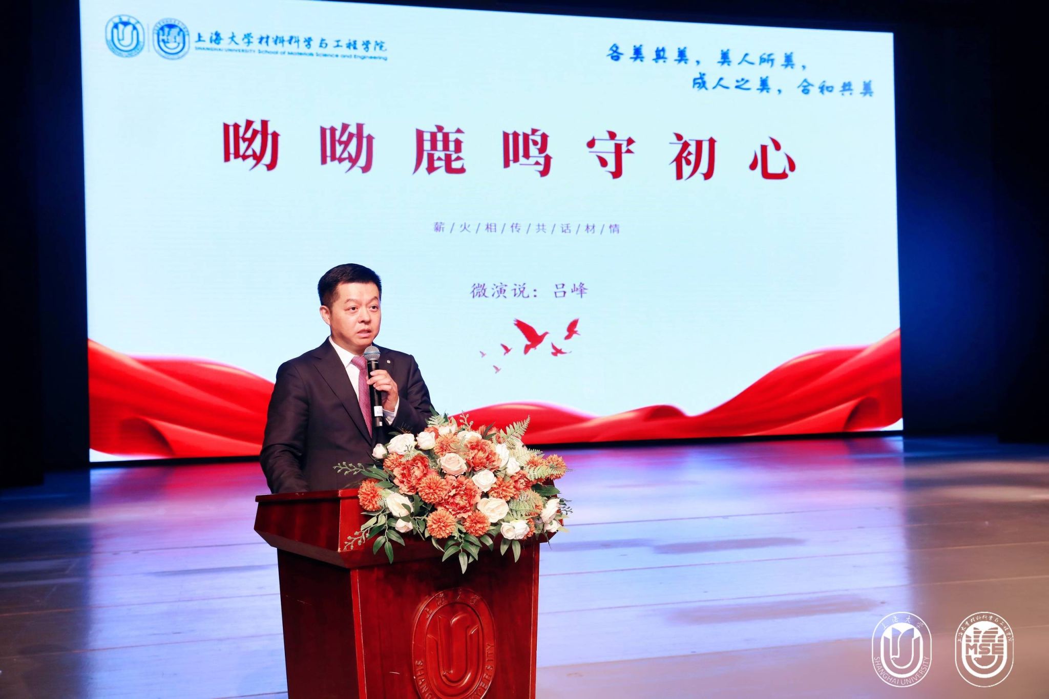 呦呦鹿鸣守初心,为了弘扬以上海大学教师陆翠兰、山鸣峰为代表的优秀老师们多年来对学生的培养和发展所做的贡献,以两位老师的历届学生为主要群体的校友代表和共事多年的同事,联合倡议发起设立鹿鸣基金,用于支持材料科学与工程学院的人才培养工作。本次活动为获得“鹿鸣育人奖”的两位教师以及获得“鹿鸣领导力”奖学金的学生举行了颁奖仪式。在欣赏了一段精彩的获奖剪影后,获奖人依次上台领奖,并合影留念。同时,还邀请了91级校友、北京昌久律师事务所伙人律师吕峰介绍鹿鸣基金的创办由来,在微演说中,他表达了对母校、对材料学院的殷切祝福。