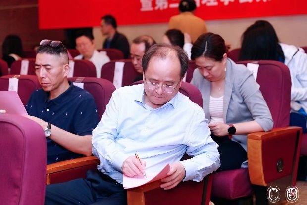 会议以无记名投票方式选举产生上海大学材料学院第三届理事会会长黄健,副会长陈晓东、黄晨、刘引烽、吕峰、王林军、谢为一、杨伟民、张东、朱明原,秘书长祁晶以及曹亚民等152位理事,材料学院第三届理事会会长黄健上台为新任理事一一颁发聘书。