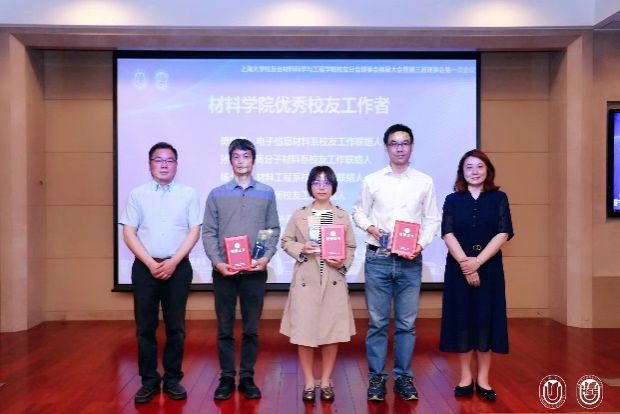 材料学院校友会取得的成果离不开各系所校友联络人的辛勤付出和校友理事支持与帮助,会上特此对校友工作者和优秀校友理事进行表彰。由上海大学对外联络处副处长、校友会办公室副主任杨静和第二届理事会会长王林军为樊建荣、孙莺、杨弋涛、林根文颁发材料学院优秀校友工作者奖,上海大学党委副书记欧阳华为荣获2020-2021年上海大学优秀校友的理事张东、陈晓东、戴克明、印琼玲、吕峰、张正勤和谢为一校友颁发材料学院优秀校友理事奖。