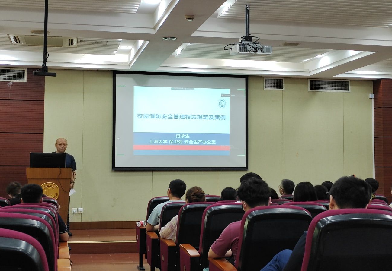 会上,方建慧处长向师生宣讲高校实验室安全管理的要求和相关法规,解读《上海大学实验室安全管理办法》以及《上海大学实验室安全责任追究办法》,为学院实验室安全工作提出指导和建议。他指出,实验室安全是高校实验室管理工作的重要组成部分,任何安全隐患都应得到及时识别和解决。为了确保实验室安全,学校鼓励学院定期开展宣传活动、文化建设、教育培训和应急演练等,提高师生对实验室安全的重视程度,增强安全意识,培养应对突发情况的能力,并形成安全文化、凝聚安全共识。