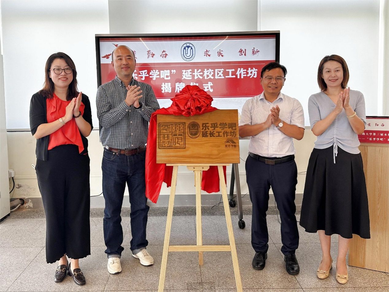 乐乎学吧作为上海大学本科生学业发展指导中心的一项特色品牌项目,旨在为广大同学提供丰富的学习资源和实践平台。乐乎学吧延长校区工作坊设立在延长校区文荟图书馆,工作坊的成立将进一步服务延长校区本科生开展学业发展,提供零距离的沟通交流空间。孟祥栋、曹俊、倪瑜、王智君等四位老师共同为乐乎学吧延长校区工作坊揭牌。随后,来自闳约书院的彭思琪同学作为朋辈导师代表发言。