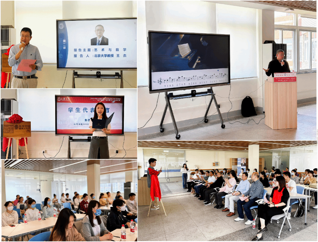 王杰教授的报告围绕“艺术与数学”展开,讲述了乐律与数学的关系,详细介绍了音乐、电影中声音、色彩、波形、旋律与数学的深刻关系,并阐释了艺术与数学之间密切而又往往不为人知的联系。王杰教授渊博的知识,丰厚的艺术素养,感染了在场的所有师生。