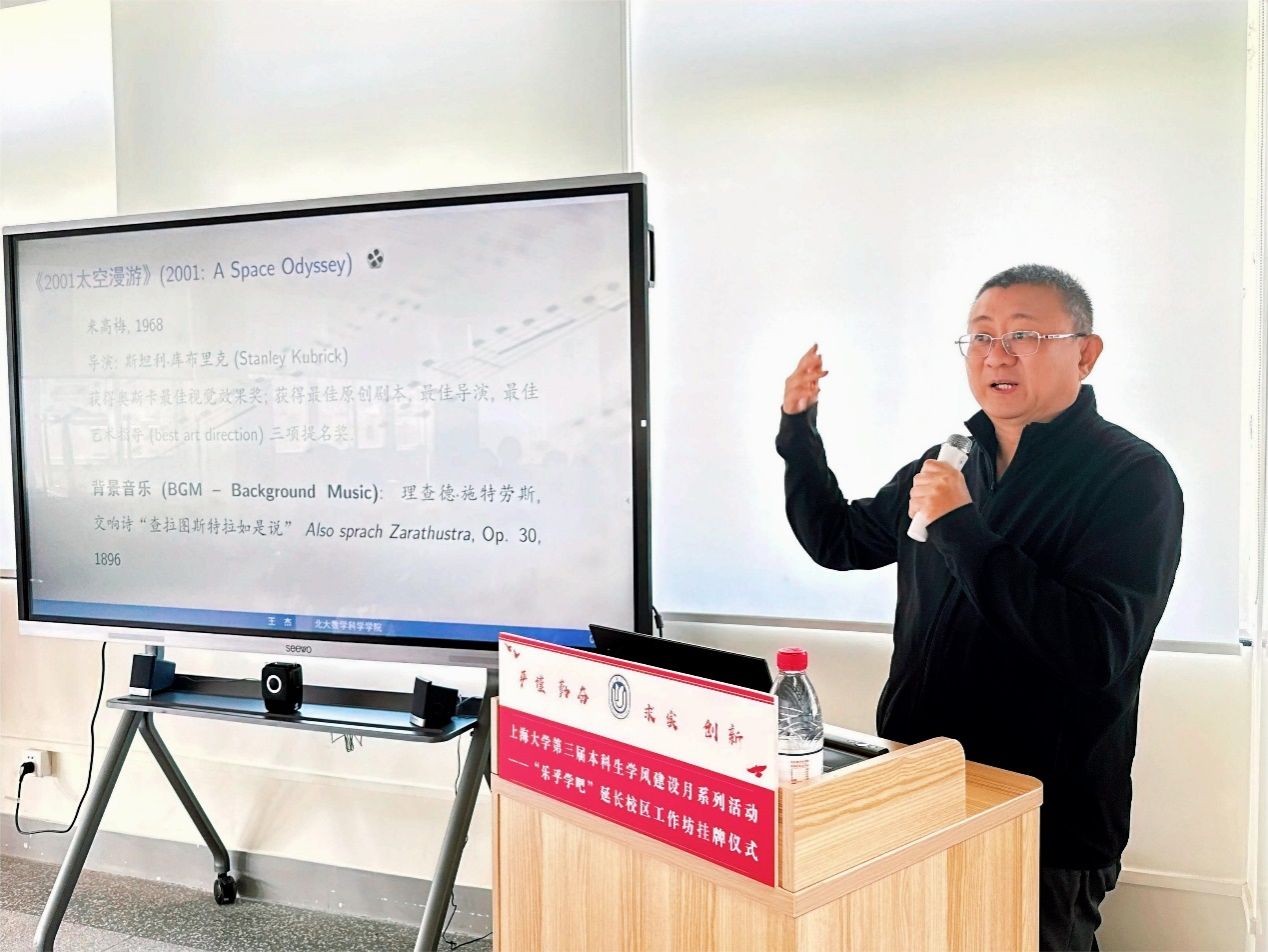 为培育和践行“严谨、勤奋、求实、创新”的优良学风,上海大学第三届本科生学风建设月系列活动——“乐乎学吧”延长校区工作坊揭牌暨首期讲座于6月8日上午在延长校区文荟图书馆举行。北京大学原党委常委、副校长王杰教授,图书馆博物馆档案馆党委书记王远弟老师,学生工作办公室主任、武装部部长、本科生书院管理中心主任孟祥栋老师,伟长学者、理学院教授王卿文老师,图书馆副馆长倪代川老师,学生工作办公室副主任何卓衡老师,上海美术学院党委副书记、副院长、闳约书院执行院长曹俊老师,上海电影学院党委副书记、副院长倪瑜老师,新闻传播学院党委副书记、副院长王智君老师,以及学业发展指导分中心的负责老师和同学出席本次会议。会议由上海美术学院团总支书记赵元同学主持。