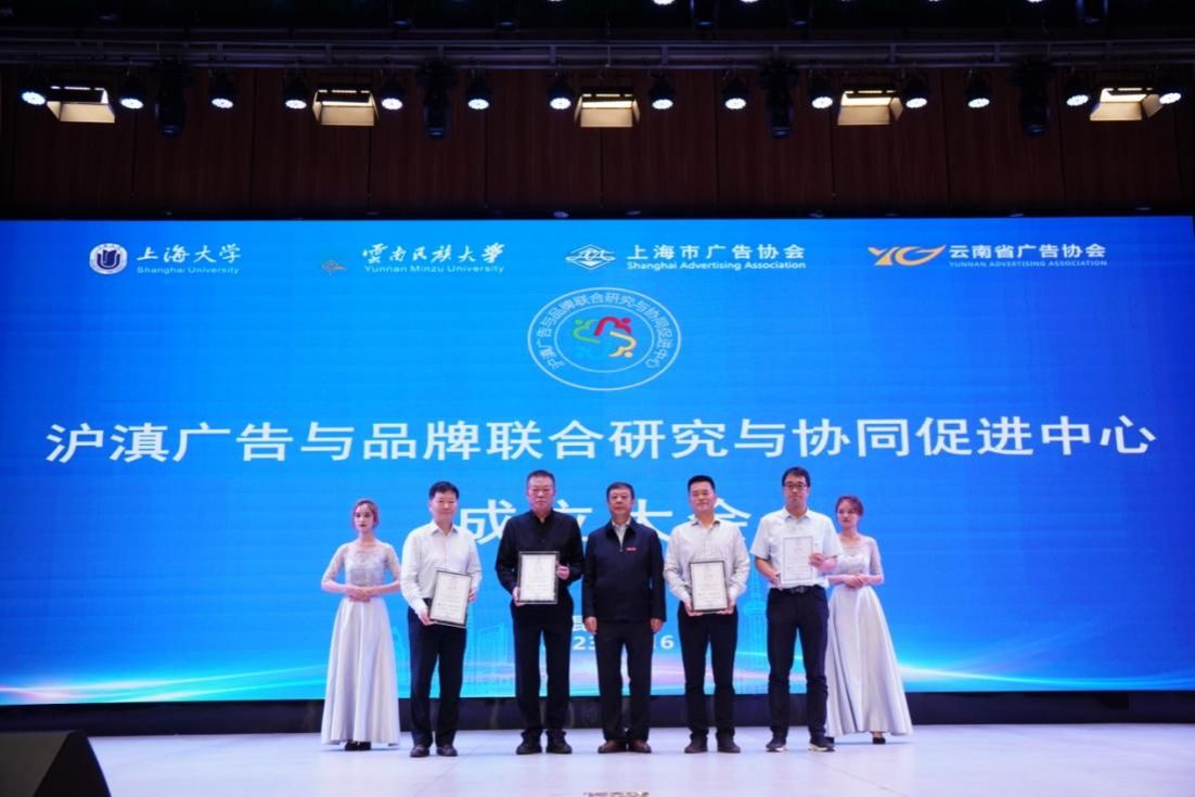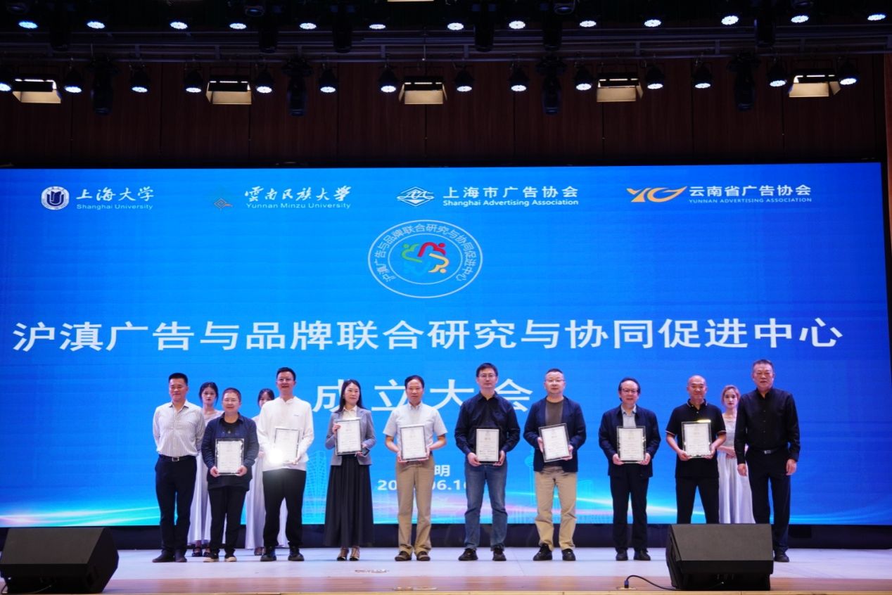 为持续深化沪滇产业协作,推动“云品出滇”与“滇品入沪”,加快探索“上海企业+云南资源”“上海市场+云南基地”等协作方式,6月16日,沪滇广告与品牌联合研究与协同促进中心在云南民族大学揭牌成立。该中心由上海大学、上海市广告协会、云南民族大学、云南省广告协会依托上海广告研究院和云南省广告与品牌研究院合作成立,中心理事会设上海方和云南方执行理事长各1名,上海方和云南方执行副理事长各1名,理事35人,理事单位24家。云南省教育厅、云南省市场监督管理局、云南民族大学等领导共同出席了沪滇广告与品牌联合研究与协同促进中心的成立大会。