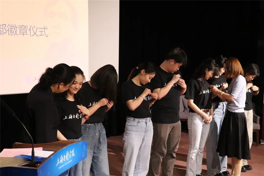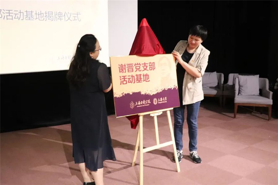 党委教师工作部副部长孙琦琰老师、党委宣传部融媒体中心副主任谢瑾老师上台,共同为谢晋党支部的活动基地揭牌。上海大学党政办公室延长校区综合办公室副主任王霖老师、上海电影学院党委副书记倪瑜老师为谢晋党支部党员授予徽章。而后,谢晋党支部的学生党员代表李雨晨同志发表了传承谢晋精神的承诺。