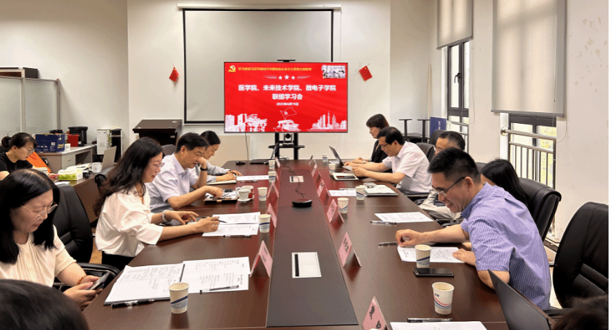 为进一步落实国家重大战略,推动高质量发展,深入推进学习贯彻习近平新时代中国特色社会主义思想主题教育,6月19日上午,微电子学院、未来技术学院、医学院在上海大学宝山校区东区3号楼317会议室召开联组学习会。校实验室与设备管理处处长方建慧,微电子学院党委书记郭纯生,执行院长张建华,党委副书记、副院长袁铭,副院长胡挺,未来技术学院党委书记竺剑,党委副书记、院长彭艳,党委副书记、副院长钱文馨,副院长岳晓冬,医学院党委书记李娟,院长刘斌,副院长姚萱,党委副书记、副院长盛晓娜出席会议。会议由医学院党委书记李娟主持。