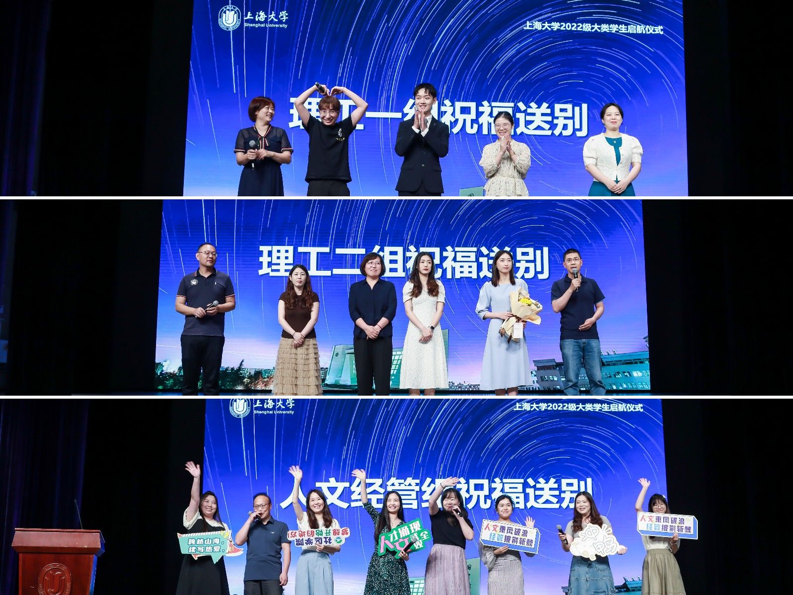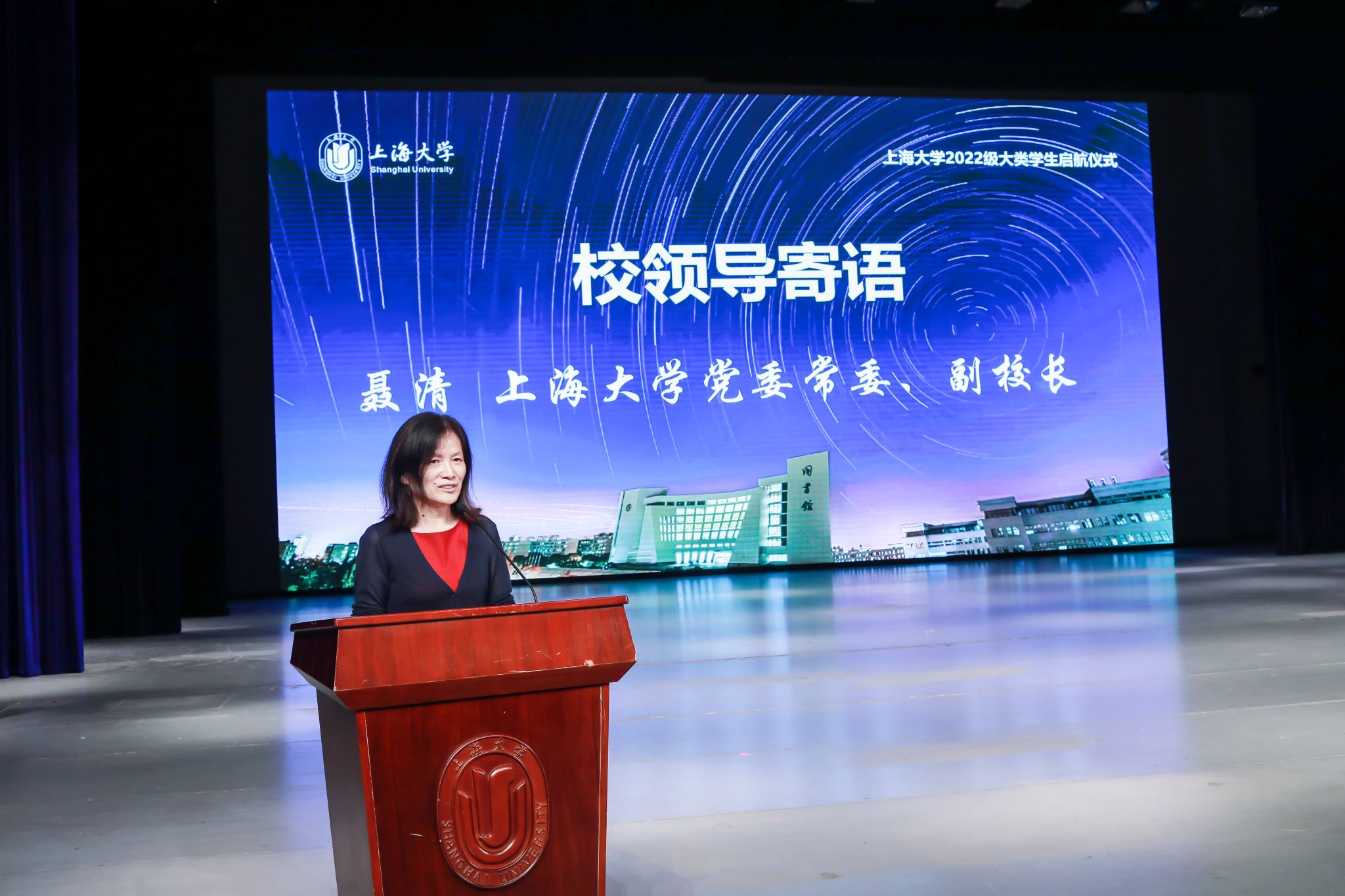 6月25日晚上,上海大学2022级大类学生启航仪式在宝山校区伟长楼举行,本次活动还设置了图书馆报告厅、J103和J202等三个分会场。出席此次启航仪式的嘉宾有校党委常委、副校长聂清,校党委常委、宣传部部长胡大伟,教务部常务副部长彭章友,学工办主任、武装部部长、本科生书院管理中心主任孟祥栋,招毕办主任陆瑾,后勤保障部党委书记李坚,信息办主任许华虎,后勤保障部副部长、公寓办主任胡乾源,党委组织人事部组织处副处长张云中,党委教师工作部副部长、本科生书院管理中心副主任孙琦琰,校团委副书记富旭和高顿教育集团上海市场总监孙超、泽稷教育副总裁祁玉娟,以及社区学院导师代表和全体师生参加了本次启航活动。各专业学院的领导、老师和学生代表也专程来到会场迎接2022级同学。本次活动由社区学院辅导员薛卜真、谢玲玲和理学工学Ⅰ类学生邱皓镧、蓝晶晶主持。
