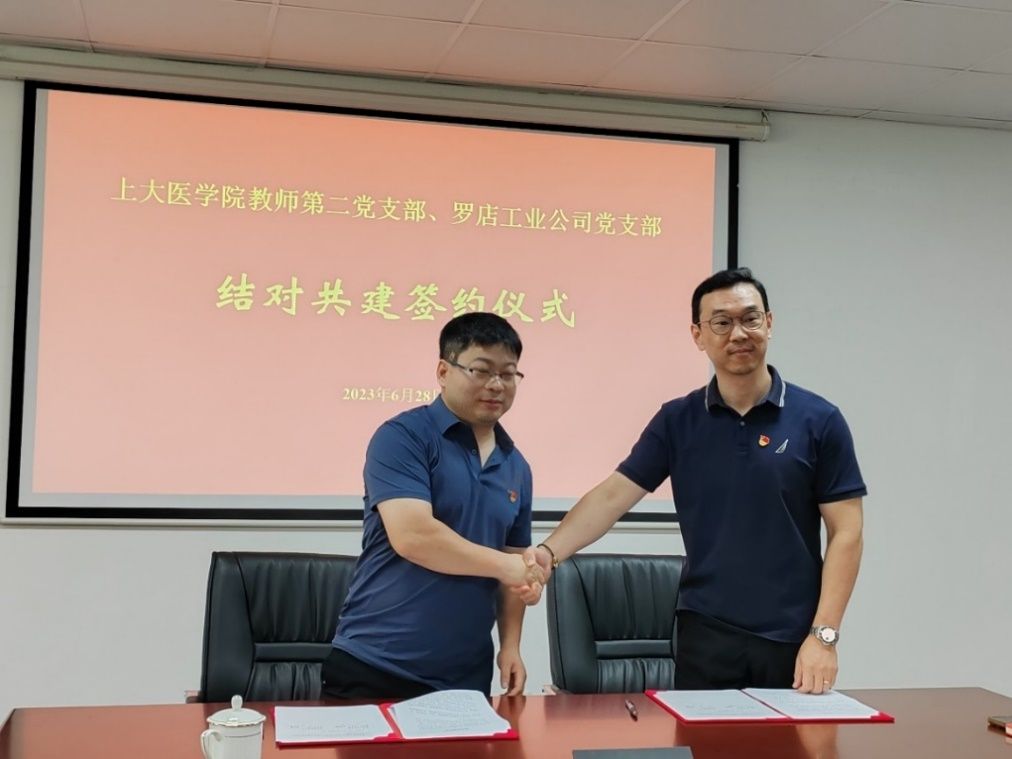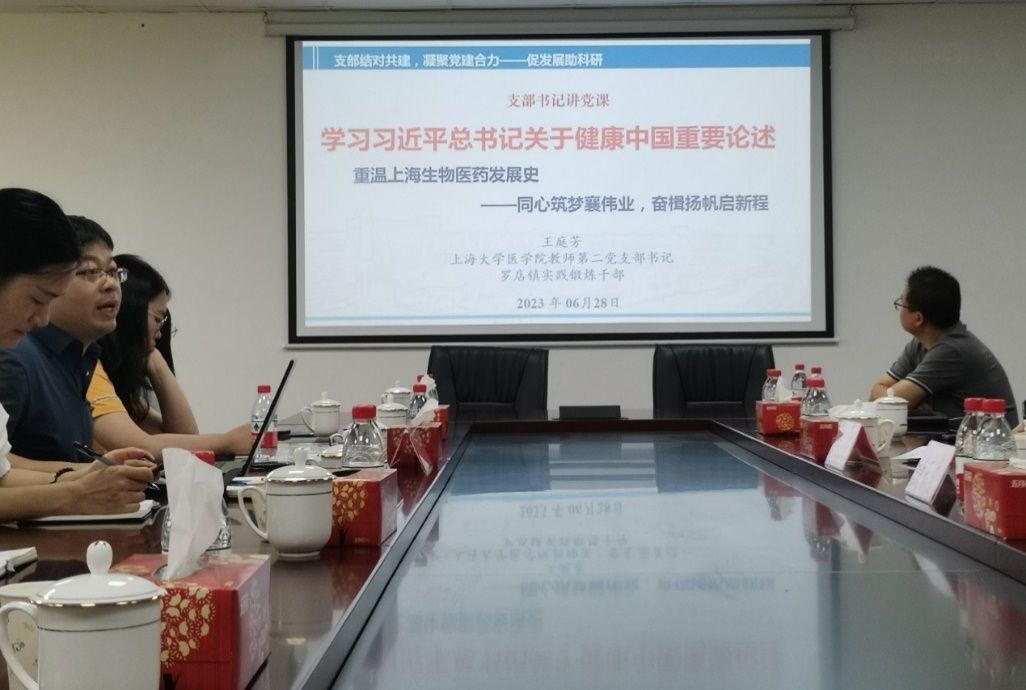 为深入推进学习贯彻习近平新时代中国特色社会主义思想主题教育,6月28日上午,“支部结对共建,凝聚党建合力,促发展助科研谋新篇”——上海大学医学院教师第二党支部与宝山区罗店工业公司党支部结对仪式暨联组学习会顺利举行。宝山区罗店工业公司党支部书记朱东波、上海大学医学院党委副书记、副院长盛晓娜、教师第二党支部书记王庭芳及双方党支部党员代表参加了会议。