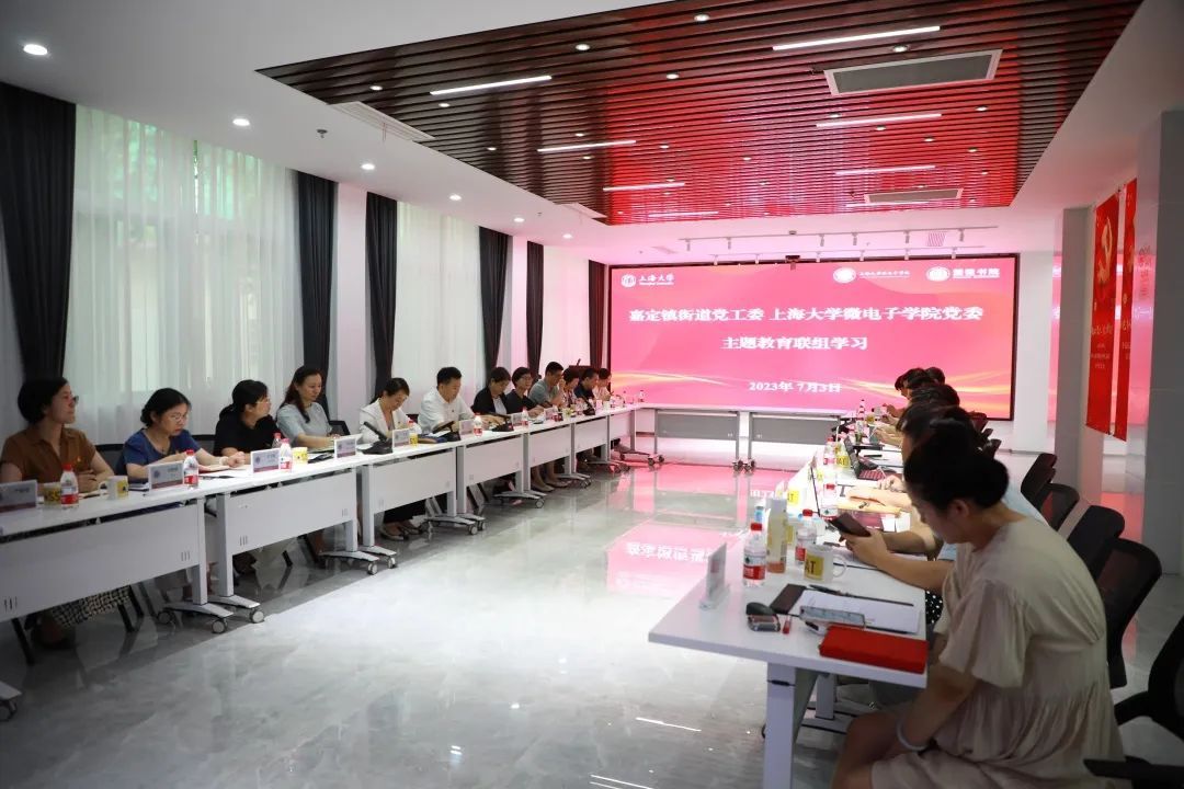 7月3日,微电子学院党委、嘉定镇街道党工委在微电子学院大楼101开展主题教育联组学习。嘉定镇街道党工委副书记、办事处主任胡建会,嘉定镇街道党工委副书记王陈芳、张敏,嘉定镇街道党工委委员、办事处副主任冯晴,嘉定镇街道党工委委员、纪工委书记、监察办主任张慧,嘉定校区综合办主任、微电子学院党委书记郭纯生,嘉定校区综合办副主任陈新、张其,微电子学院党委副书记、副院长袁铭,副院长胡挺、路秀真出席,学习会由郭纯生主持。