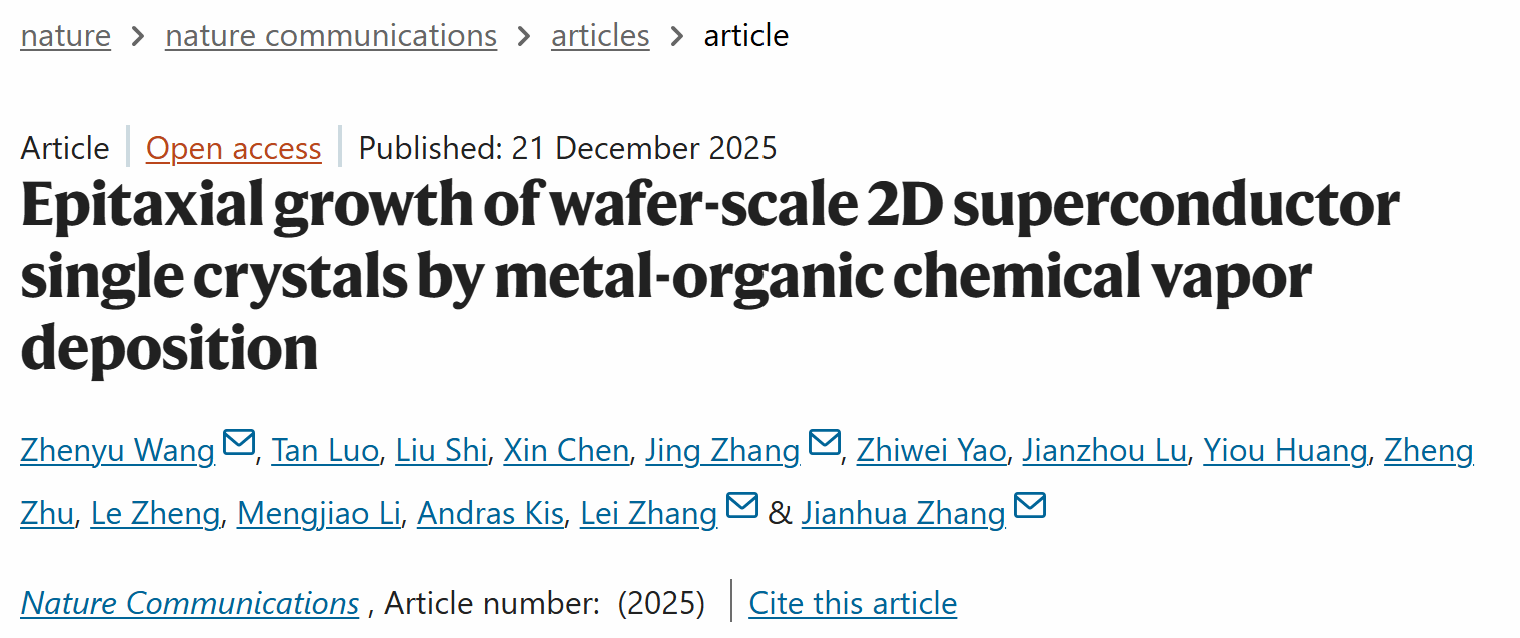 Epitaxial growth of wafer-scale 2D superconductor single crystals by metal-organic chemical vapor deposition,(Nat.Commun.,2025,DOI:s41467-025-67886-z)