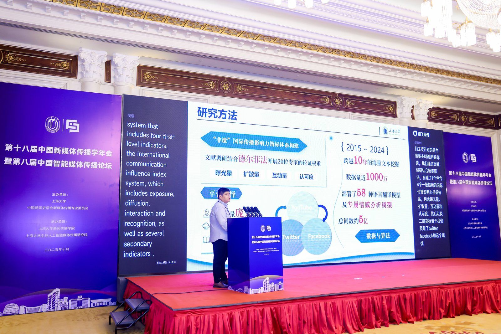 10月12日,第十八届中国新媒体传播学年会暨第八届中国智能媒体传播论坛在上海举办。本次论坛以“智能传播时代的主流媒体系统性变革”为主题,为在智能传播变革、社会发展、国家战略需求的整体视域下思考和探讨系统性变革提供理论支撑和实践指导。论坛由上海大学、中国新闻史学会新媒体传播专业委员会共同主办,上海大学新闻传播学院、上海大学全球人工智能媒体传播研究院承办。来自国内外高校、主流媒体、智能媒体企业和政府主管部门的近300位代表参会。