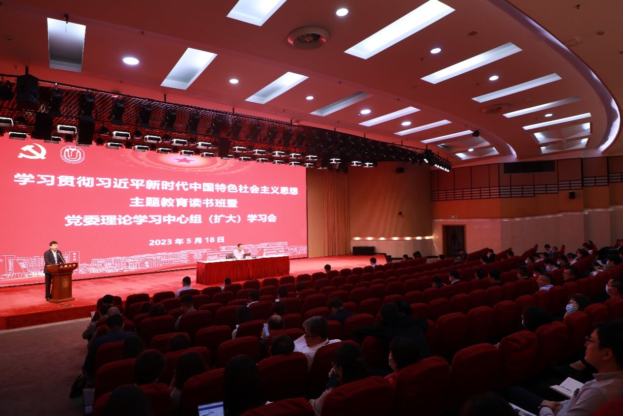 5月18日下午,上海大学党委举办学习贯彻习近平新时代中国特色社会主义思想主题教育读书班第五讲暨党委理论学习中心组(扩大)学习会。校领导班子成员、全校各单位中层干部现场参加学习,市委第十八巡回指导组王娟同志列席学习会。会议由校党委副书记欧阳华主持。